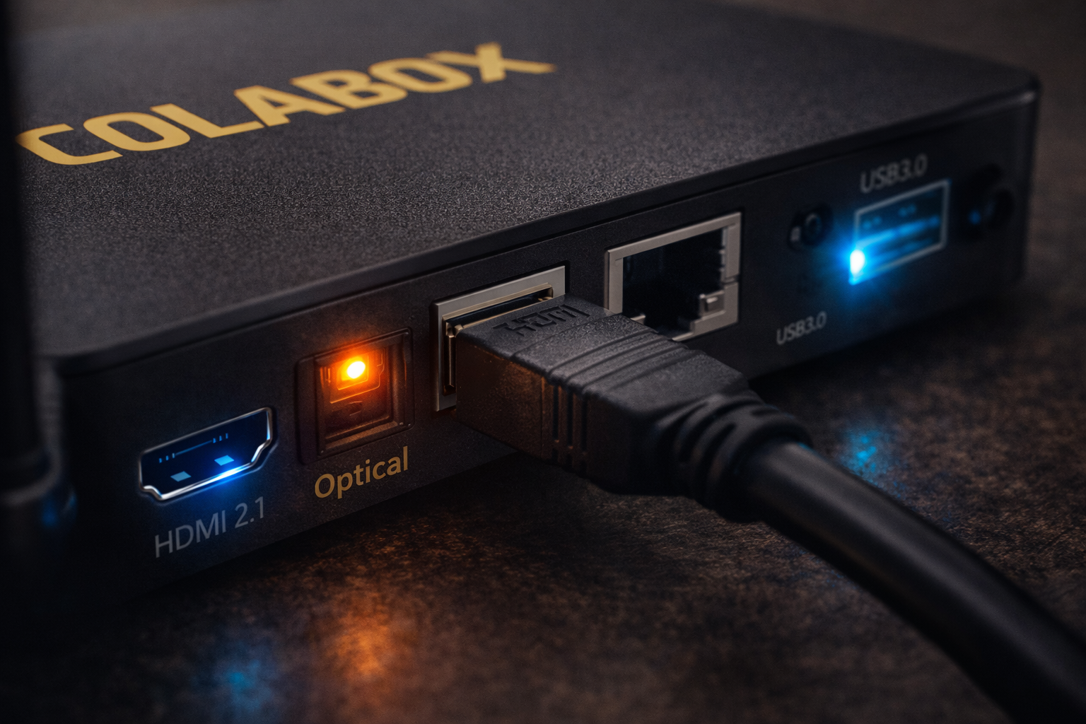 Minimum 25 Mbps recommended for optimal 4K streaming. ColaBox supports both dual-band Wi-Fi (via external antennas) and wired Gigabit Ethernet for maximum performance and reliability.